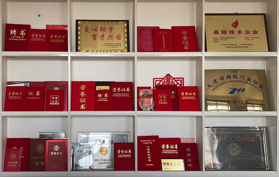 公司現(xiàn)為天津市鍛造行業(yè)協(xié)會常務理事單位,曾榮獲2019年度天津市寧河區(qū)總工會“五一”勞動獎狀,2022年度天津市寧河區(qū)總工會“工人先鋒號”等榮譽稱號。